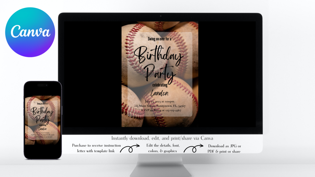 Purchase, edit, and print and/or text within minutes! This downloadable template is edited directly using Canva.com in your browser or mobile device app. Canva is web-based, so you do not need to download any software. Save time by adding in your own details rather than waiting for proofs.
