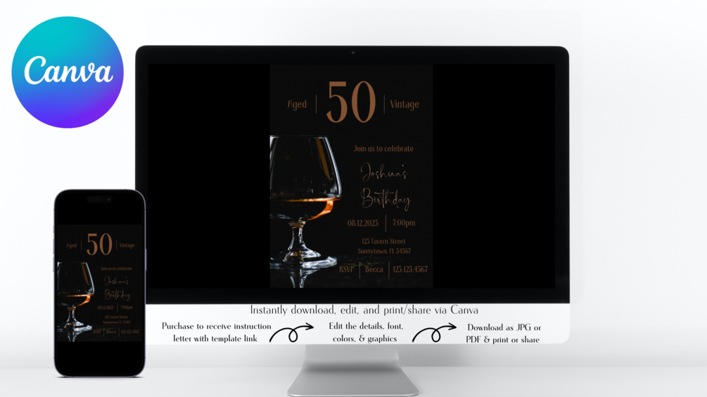 Editable Bourbon | Whiskey Birthday Invitation Template | Instant Download