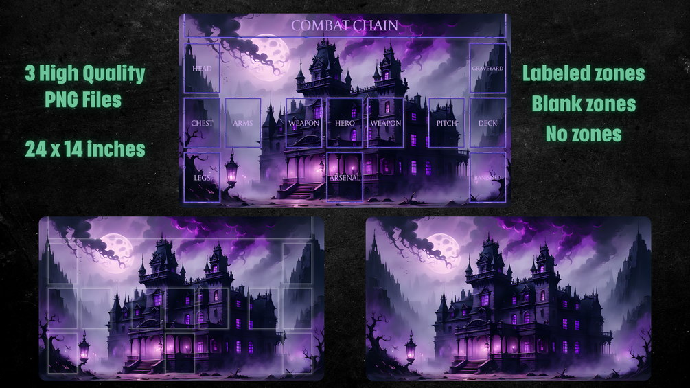 Access your files within MINUTES of purchase! This custom, digital playmat design was artfully created for the Flesh and Blood TCG. Your purchase includes 3 high resolution .png files (one with zones, labeled zones, and one without zones).