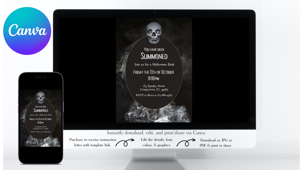 Editable Skull Halloween Party Invitation Template | Instant Download | Birthday Party